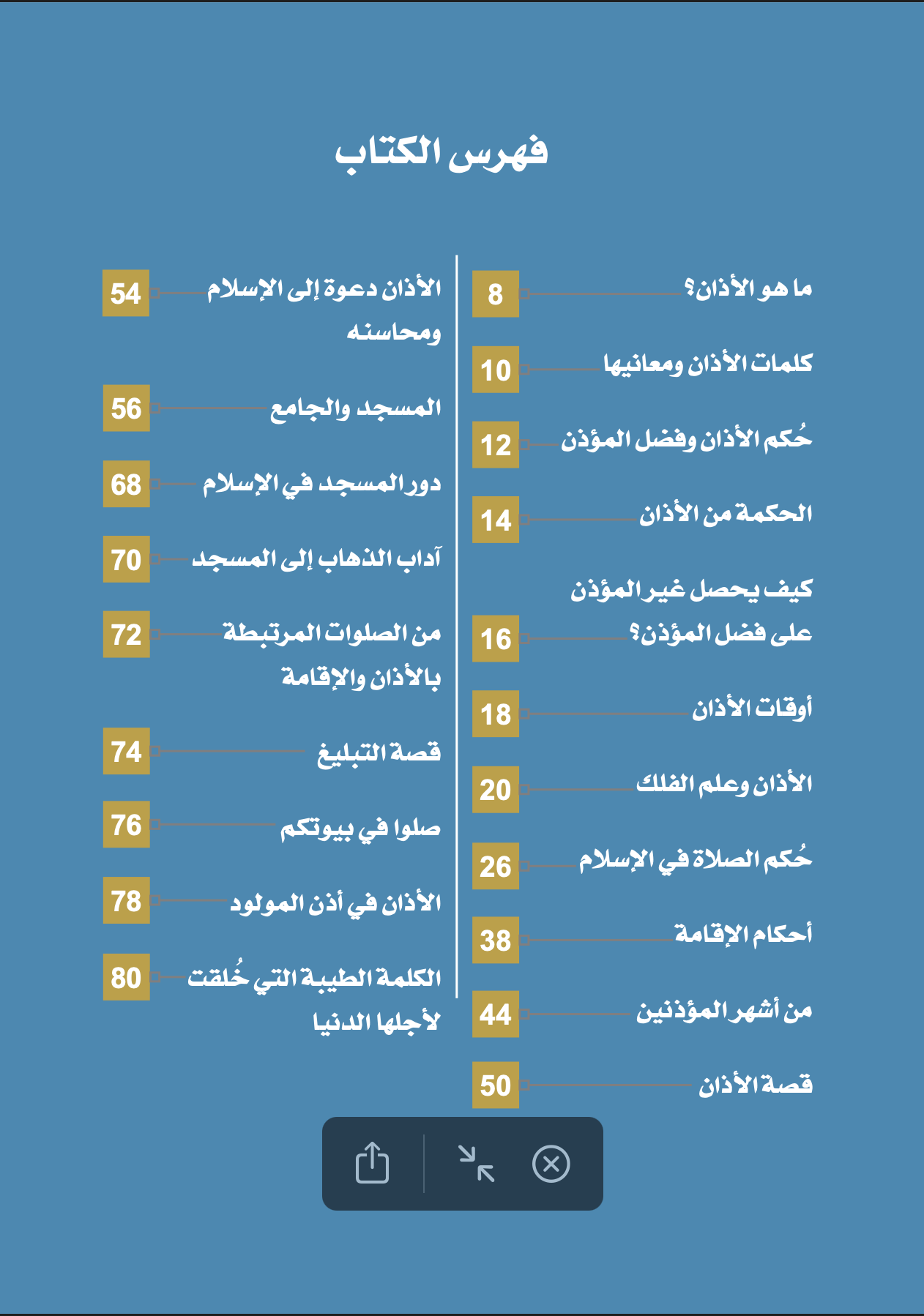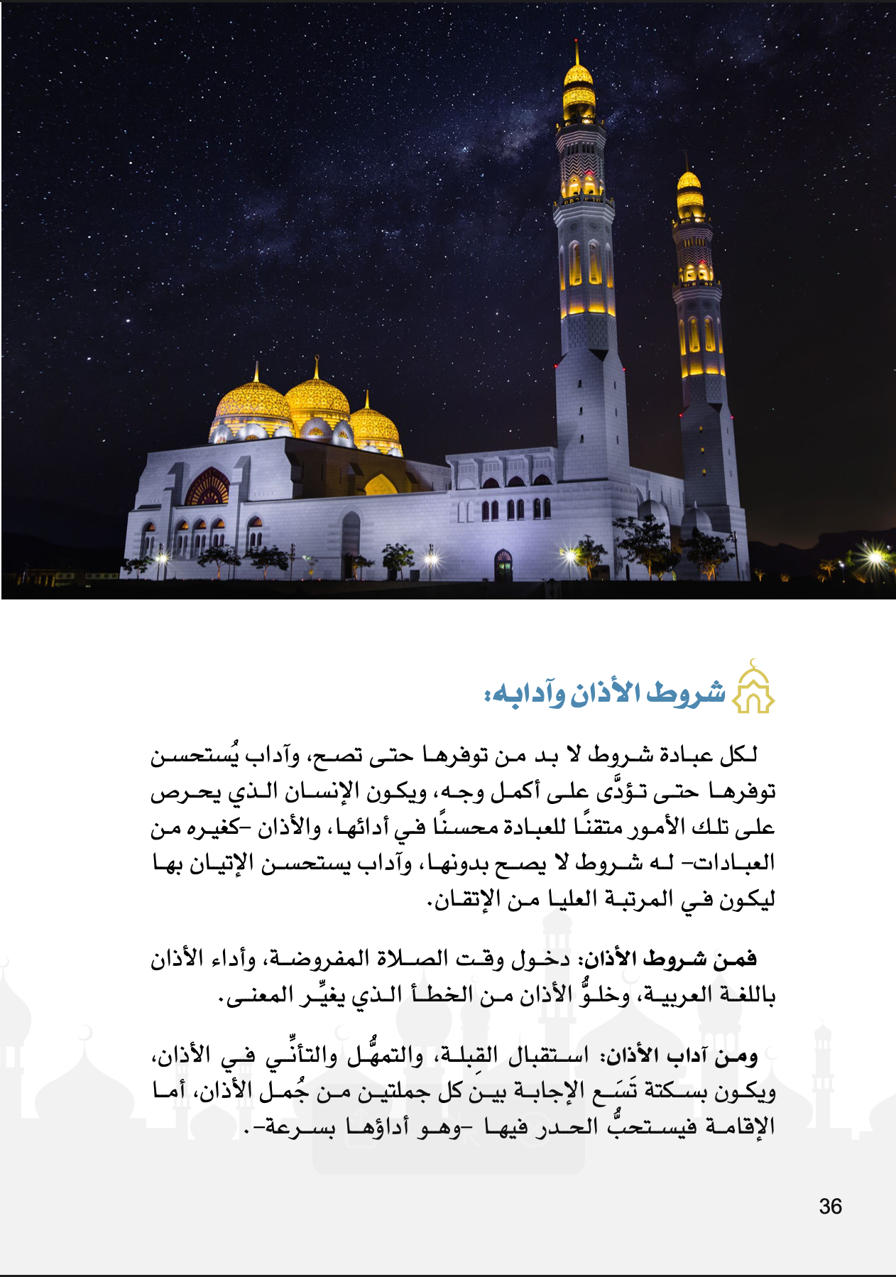 فهــذا كتــابٌ يحدِّ ثــك عــن الأذان؛ النــداء العظيــم لأعظــم عبــادة بعــد شــهادة التوحيــد، والشــعيرة الجليلــة مــن شــعائر الإسلام والصــوت الخالــد الذي يتــردَّد فــي جنبــات الأرض بشــهادة الحــق والصــدق لله ربِّ العالميــن ونبيــه محمــد بــن عبــد الله صلــى الله عليــه وســلم، والبيــان القاطــع لســبيل فلاح الخلــق وطريــق هداهــم